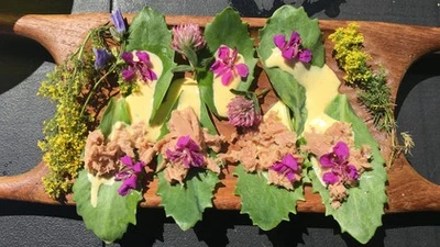 Få opskriften på en vild, spiselig buket med urtestøv og dip.