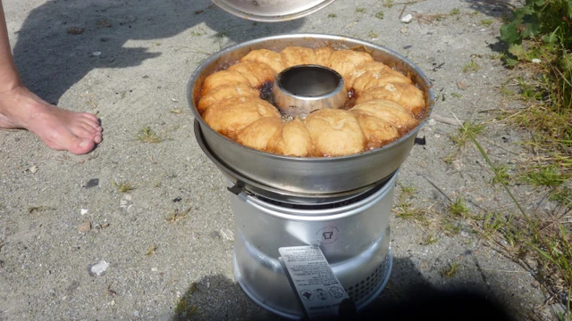 Bag den fynske nationalkage over trangia på 50 minutter. Det er både hyggeligt og godt for ganen!