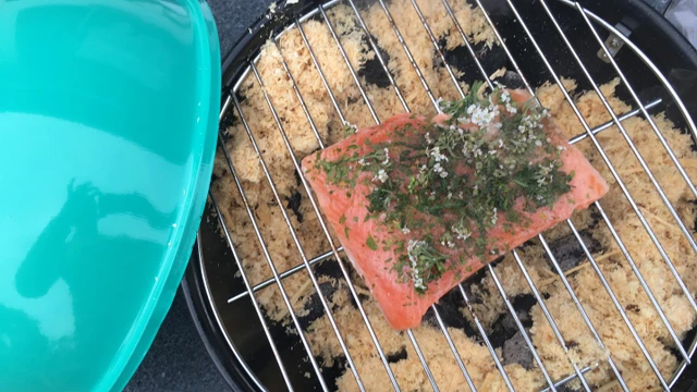Ørred røget over træflis og krydret godt med røllike og fattigmandspeber. Dét er velsmag i hver eneste bid! Tag kuglegrillen med på tur, eller bring naturen hjem i haven.