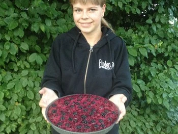 Fyld forsigtigt brombærmassen over kagecremen og stil tærten til afkøling i 5-6 timer i køleskabet.