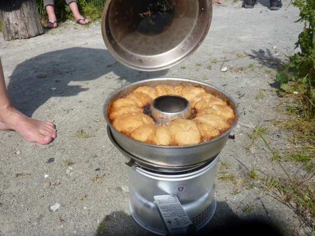 Kom brødet over en Trangia og bag den i cirka 50 minutter.