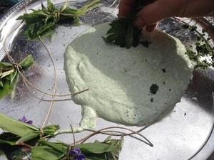 - Tag en anden slags vilde urter og blachér* dem i en gryde med kogende vand i 30-60 sekunder. Her kan du f.eks. bruge ramsløg eller strandmælde.