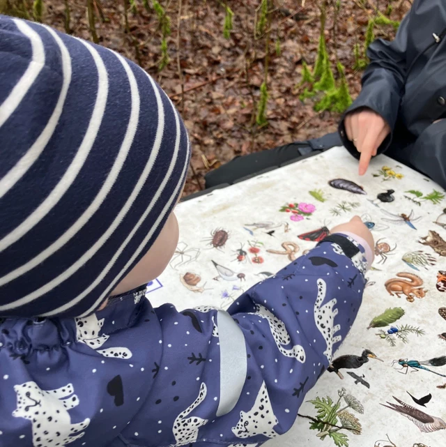 Turen aktiverer sanserne, både gennem det ujævne underlag og ved duftene, lydene, synet og det taktile overalt omkring jer. Særligt de helt små børn har ikke brug for avancerede oplevelser i naturen. For dem er det en stor oplevelse i sig selv at sanse. Med de små er det en god idé at smide planer og mål ud til højre, og bare være. Sans med dem, sæt ord på, hvad I oplever, og tag eventuelt en kogle eller andet med hjem, der kan minde om turen.